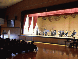 | <平成24年度部活動紹介>(4月11日) 新入生に部活動の紹介をしました。 各部活とも実演やスライド上映などを行いました。 新入生は興味津々でした。 |