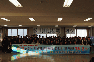 | <大韓民国工業高校生視察研修>(1月10日) 本日、大韓民国の群山機械工業高等学校から 引率職員6名、生徒38名、通訳2名が来校されました。 校内見学の後は交流会も行われ、意見や情報交換を 行いました。 |
