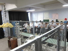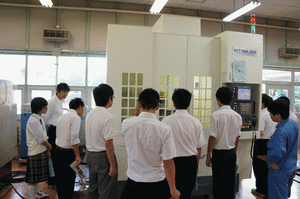 | <学校説明会>(8月21日) 中学3年生を対象に、学校説明会を実施しました。 当日は、462名の参加者がありました。 説明会では、学校の概要や、工業科の説明・進路状況・入試情報・部活動についての話をしました。 見学会では、各工業科の実習室や施設を見学し、実習内容について説明をおこないました。 |