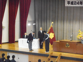 | <終業式・賞状伝達式>(12月21日) 終業式と賞状伝達式が行われました。 賞状伝達式ではたくさんの表彰者がいました。 特に12月1日行われた総合技術コンクールでは 知事賞・教育長賞はじめたくさんの賞を頂きました。 |