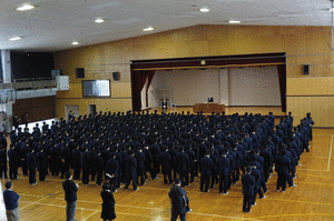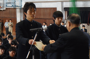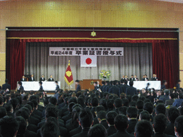 | <平成24年度卒業式>(3月2日) 本日、10時から卒業式が行われました。 式は厳粛に行われ、たくさんの来賓者も お見えになりました。 全日制192名、定時制31名が卒業しました。 |