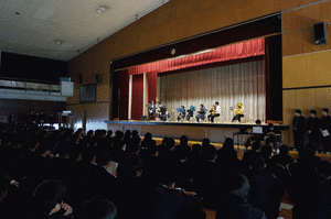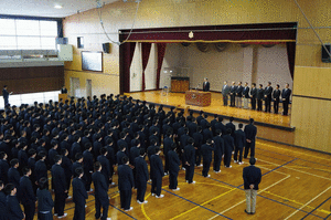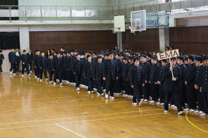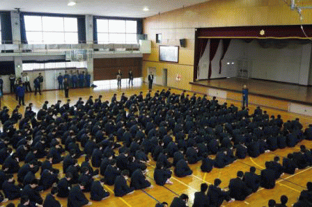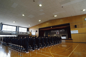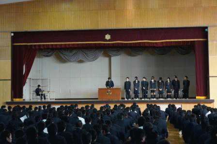 | <始業式>(1月7日) 始業式と生徒会新役員認証式が行われました。 生徒会新役員は希望と自信に満ち溢れていました。 さらにベトナム報告会も行われ、国際交流の大切さや 意義を学びました。 |