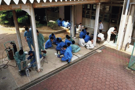 | <ガス溶接技能講習>(7月25・26日) ガス溶接技能講習が2日間、学科と実技が 行われました。講習を受け学科では法令 実技では金属の溶接、溶断を行いました。 |