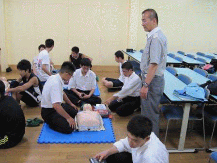 | <救命講習会>(7月11日) 本日、千工会館で救命講習会が行われました。 多数の職員・部活動の生徒が講習会に参加し、 心肺蘇生法とAEDの使用方法を学びました。 講習会終わりには講習証明書も頂きました。 |