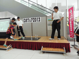 | <千工研ロボフェア2013 1日目>(7月30日) 本日、千葉のQiballで千工研開催のロボフェアが 開催されました。千葉工業高校生も役員として参加し、 お客様はとても楽しんでいました。 明日も開催いたしますので、ぜひ、この夏休みに ロボットに触れてみてはいかかでしょうか。 |