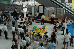 | <千工研ロボフェア2013 2日目>(7月31日) 千工研ロボフェア2日目が開催されました。 この日もたくさんのお客様がQiballに来られました。 ロボットの実演・操作・製作など色々なコーナーが あり、とてもお客様は楽しんでいました。 |