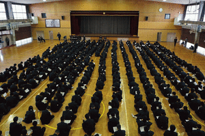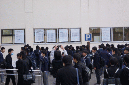 | <前期選抜発表>(2月19日) 本日、9時から生徒昇降口前にて前期入学者選抜 の発表がありました。 |