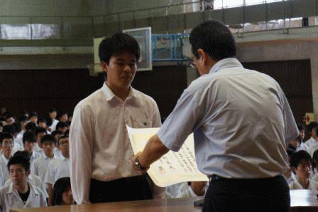 | <終業式・賞状伝達式>(7月19日) 本日、終業式・賞状伝達式が行われました。 賞状伝達式ではたくさんの表彰が行われ、 終業式は粛々と行われました。 |