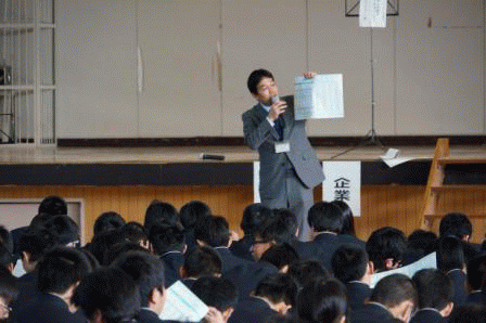 | <進路ガイダンス>(1月23日) 体育館で1年生の進路ガイダンスが行われました。 色々なブースが設けられ、生徒は好きなところで 進路の話を聴くことができました。 千葉工業高では新しい取り組みです。 |