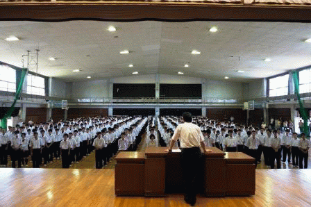 | <平成25年度生徒総会・部活動壮行会>(4月11日) 生徒総会は厳粛に行われました。 部活動の壮行会では國馬校長先生からの 激励の言葉がありました。 全校生徒・職員も活躍を期待しています。 |