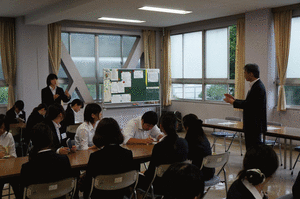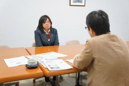 | <「特色ある学校」への取材>(11月14日) 本日、読売新聞から取材を受けました。 内容は「特色ある学校」についてで、 現在、2年生が行っているインターンシップの ことのお話しました。 内容は「どんな企業で何を学んだか」や 「将来の職業間」など色々な質問に答えていました。 |