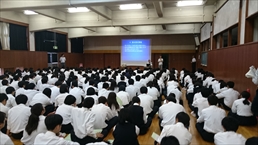 9/20、1年生を対象にキャリア教育支援コーディネーター徳力先生が「ディズニーのコミュニケーション教育」をテーマに講演を行いました。