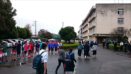 | 元気な挨拶で歓迎 |