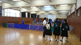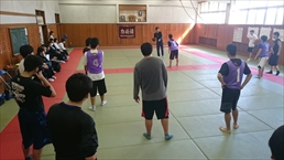 | 部活動見学会(体育館が工事のため、バスケット部が急遽、柔道場でデモンストレーション) |