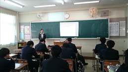 11/1、1年生が職業別説明会を行いました。17の職業分野に分かれ特徴や心構えを学びました。