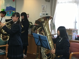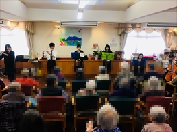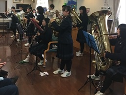 吹奏楽部、声楽研究部の訪問演奏会の様子をご紹介します。演奏だけでなく、様々なふれあいを通して交流を深めます。