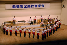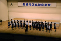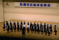 平成20年度 第30回船橋地区高校音楽会 期日:平成21年1月23日(金) 会場:八千代市市民会館 本校吹奏楽部は、ステージドリルでB・シャーマン兄弟作曲「お砂糖ひとさじで」とS・モリス作曲の「ジャンピング・ジャック」を演奏しました。 合唱部は、混声三部合唱で黒人霊歌「ディープ・リバー」とジャマイカ民謡「デイ・パー・ライツ」を演奏しました。