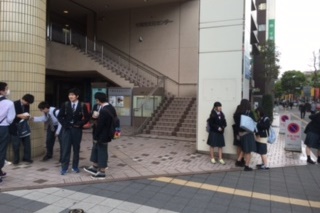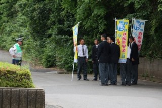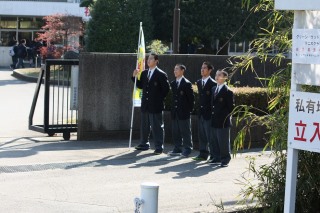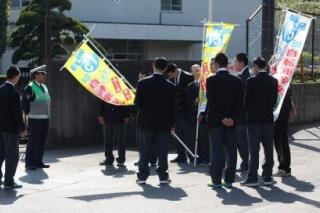 て声かけ運動を行います。今日は年間7回予定の第1回で、バスケット部が参加しました