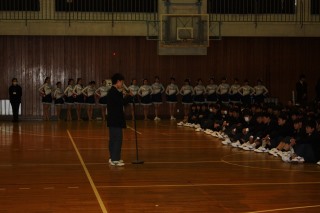 全校生徒で、関東大会に出場する女子バレーボール部を激励しました。