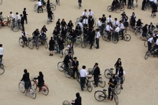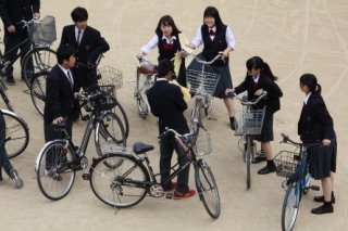 自転車通学者を対象に、生活委員が中心となってブレーキ.ランプ.ステッカー等の点検を行いました。