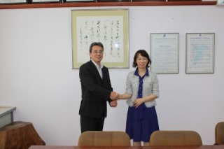 事務・韓国語講師 盧時貞先生がお見えになり、授業教材等、本校に支援していただけることになりました。
