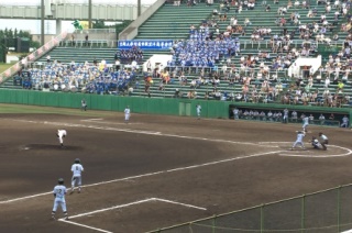 一回戦対若松、二回戦対大原戦に勝利し三回戦に臨んだ本校野球部は、緊迫した投手戦を制し