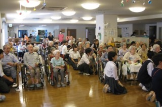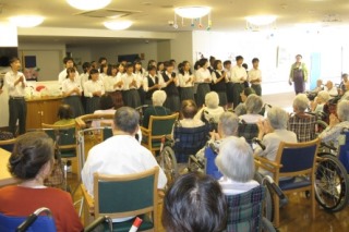 | 37名の有志が介護老人保健施設「ゆうあい苑」を訪問し、お年寄りの方と合唱や笹飾りづくりを楽しみました。 | ||