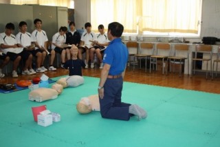 参加した32名は真剣に取り組み「普通救命講習修了証」を授与されました。