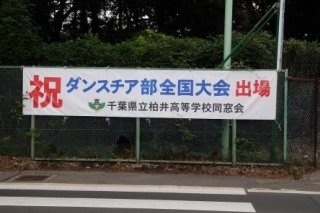 300m道路入口 (鷹之台カンツリー倶楽部フェンス)に同窓会より贈呈いただいた応援横断幕を設置しました。