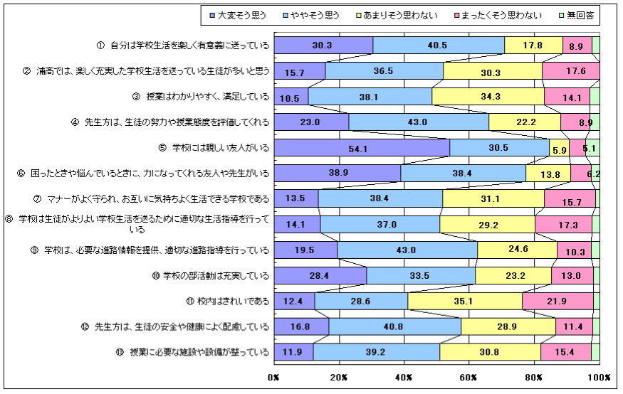 A学校生活に対する在校生による評価結果