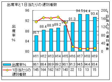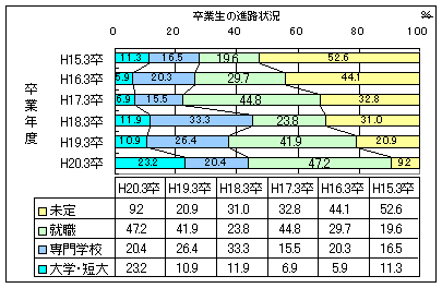 ・平成16年度に県の自己啓発指導重点校の指定を受け、基本的生活習慣の確立、規範意識や社 会性の育成等に取り組み、規律ある学習環境の創造に努めている。